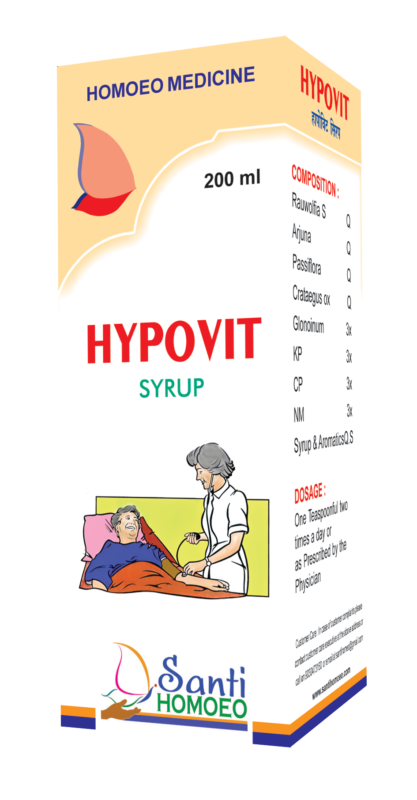HYPOVIT Syrup by Shanti Homoeo is a specialised homoeopathic syrup formulated to support cardiovascular health and help maintain healthy blood pressure balance. It is useful for individuals who experience BP-related discomfort such as restlessness, weakness, stress, and fatigue.